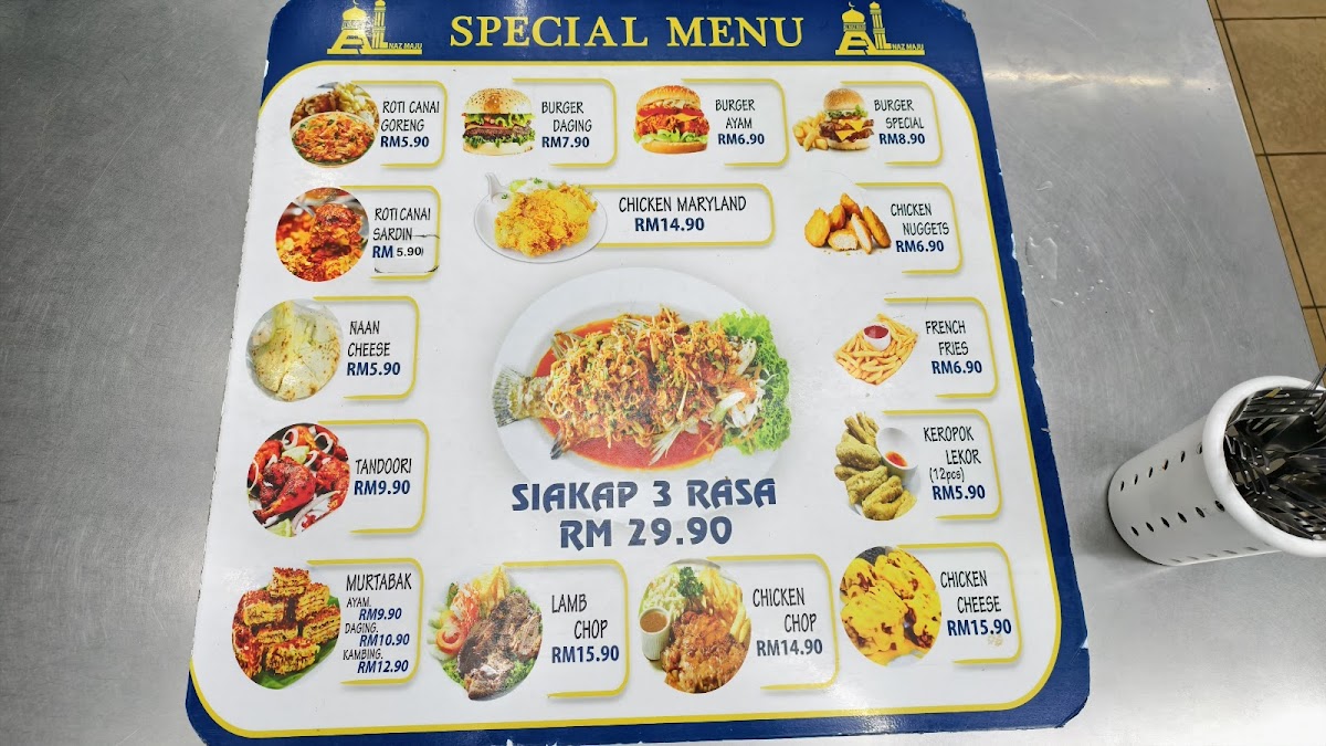 “ Nasi kandar with fried chicken is my favourite. Fried chicken is crispy. My friend always eats roti sardin, which tastes good too. Service is quite fast. The place is not too noisy. Paid parking if you want to park inside in the compound. Otherwise, you may opt to park by the road side (at your own risk). ”